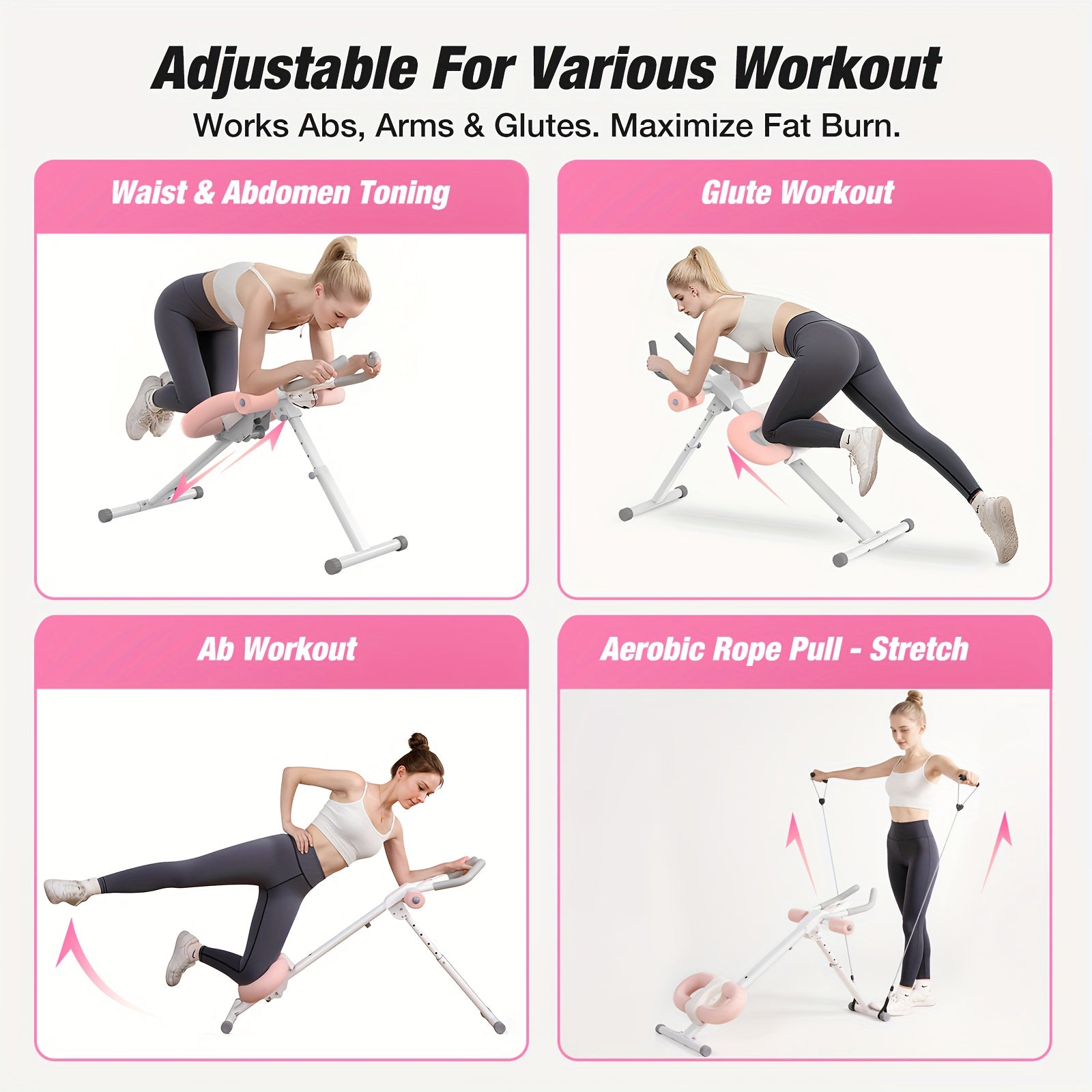 Imagine achieving a toned core and upper body from the comfort of your home with this innovative adjustable ab machine that combines multiple exercises into one compact device.